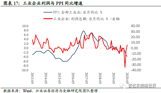 关注周期行业的利润复苏。随着下半年PPI触底回升,中国的工业企业利润增速有望结束2017年以来的下降趋势。根据库存周期规律,PPI领先工业企业利润增速,实际上,5月份,工业企业利润已出现见底迹象,当月同比增长6%。