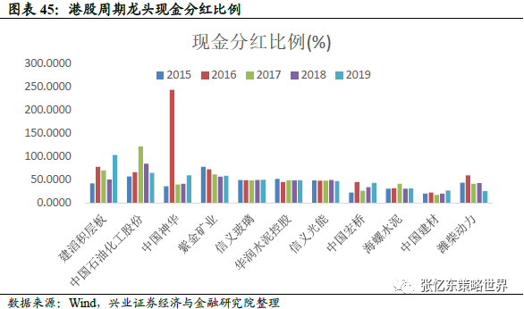 第三、周期核心资产的负债率降低和分红率提升是中长期趋势,推动价值重估。随着周期行业格局优化,竞争模式从“拼命扩张抢规模”改变为“苦练内功、提高经营质量”,周期行业龙头的盈利水平改善且稳定性增强、资本性支出弱于过去、分功率和分红稳定性显著提升,价值属性凸显。近几年,港股中石化、神华、紫金矿业、信义玻璃、华润水泥等周期龙头都维持了接近50%的现金分红比例。