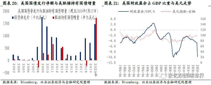 未来2-4年大规模的财政刺激,这需要货币政策的配合,美国政府债务的困境将中长期制约美元走势。截止5月15日联储持有的美国国债增量超过了美国国债的净发行量,意味着美国国债的增量几乎全部由联储包揽。