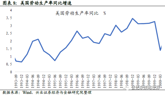 高增长:美国经济于 1991 年初触底反弹,并在1992-2000年实现了连续9年的较高增长。尤其是在泡沫期,美国实际GDP增速稳定维持在1.6%附近的相对高位水平。
