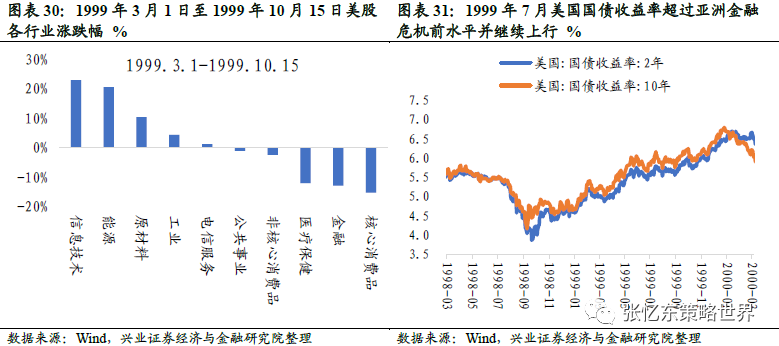 时任美联储主席格林斯潘表示只要有任何关于通胀的迹象,就会再次加息。10年期国债利率在1999年6月回升至亚洲金融危机前的水平,7月下旬又开始快速上升,从7月21日5.66%上升50个bp至8月10日6.16%。