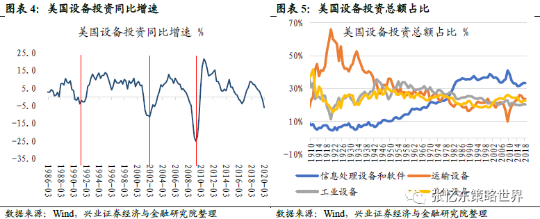 科技型行业主导着设备投资规模。一个突出表现是,自80年代开始,美国信息类设备投资的占比就在不断持续上升,到1990年代维持在36%的高位,而工业设备和运输设备投资占比不断下滑,在25%以下徘徊。