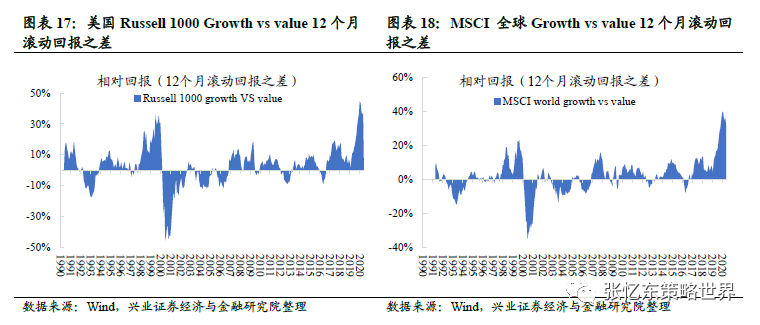 其次,海外投资风格回归价值,有利于金融、地产、周期等港股核心资产价值重估。2021年海外的投资风格将回归价值,至少2020年成长股跑赢价值股所创造的历史峰值将显著收敛。2021年海外资金配置港股的风险偏好提升,推动金融、地产、周期等港股传统核心资产的重估。