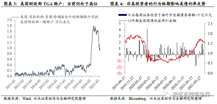 对于第一点供给因素,根据美国财政部最新表态,后续疫后刺激将优先使用TGA余额而非新发债务,截至5月5日,美国TGA账户余额依旧高达0.95万亿美元,2季度美债供给对收益率上行的刺激会明显弱化。