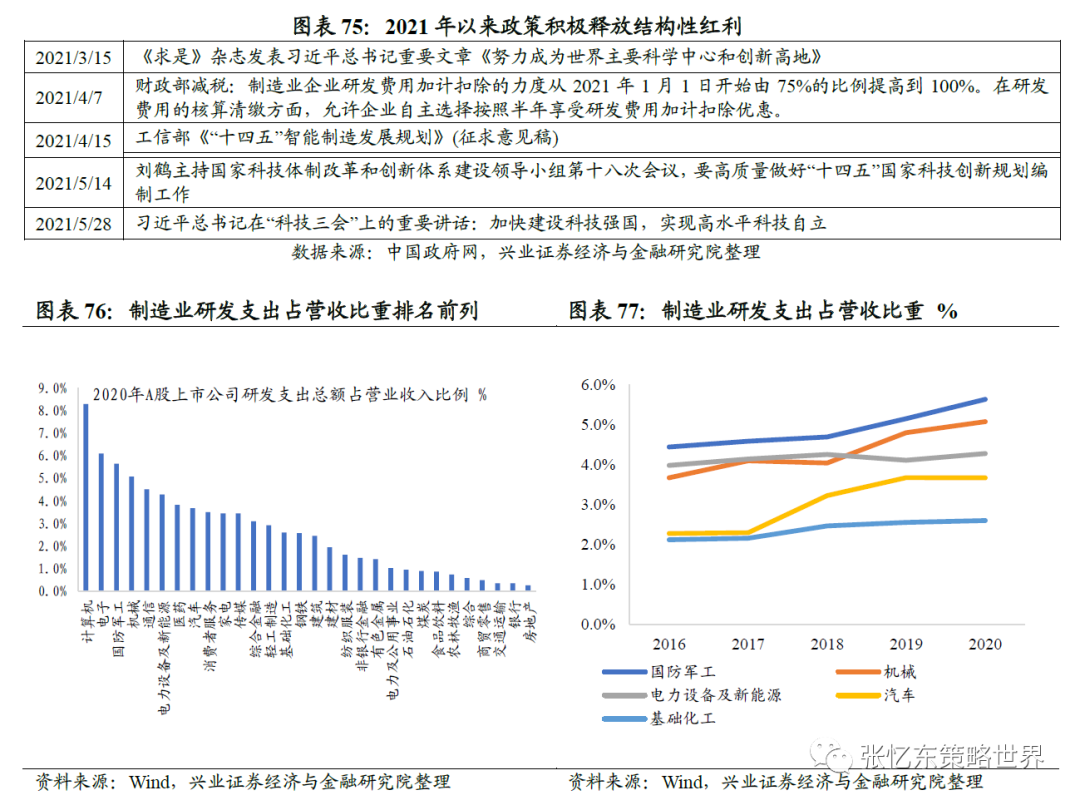 4.4、投资机会二:先进制造业——智能汽车、新能源车、新能源、半导体、高端装备等。1)智能制造:中期看下游产能扩建,长期看国产替代;2)军工为代表的高端装备:“十四五”红利,自下而上业绩为王;3)智能汽车:结构分化,自主崛起带来的格局新趋势;4)新能源:供需爆炸式增长,组件龙头有望迎来利润拐点;5)新材料:多点开花,关注国产化新格局与各产业发展新机遇。