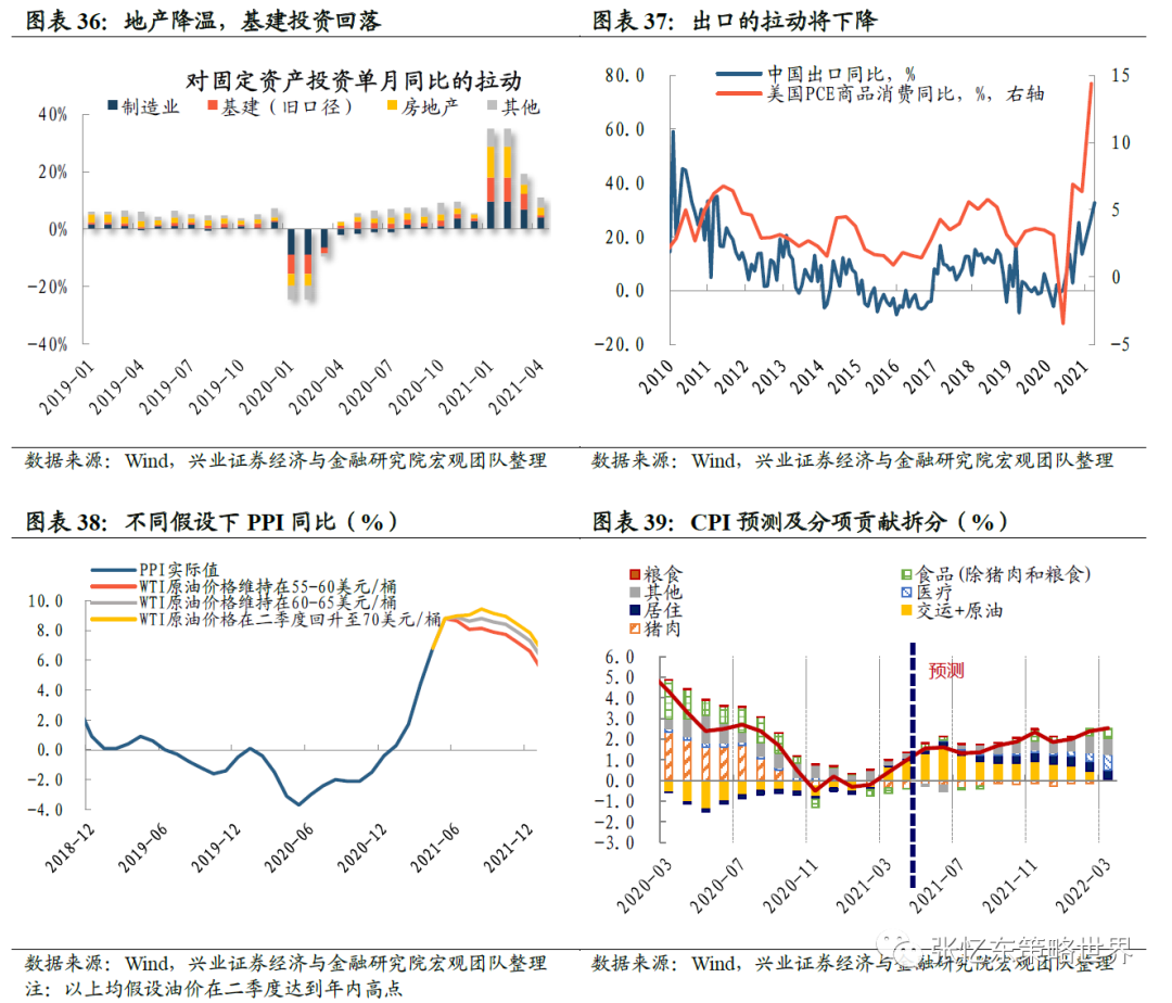 首先,国内外需求都将弱化,经济增速将回落,通胀不是问题。净出口的贡献将放缓,地产和基建投资增速将回落。