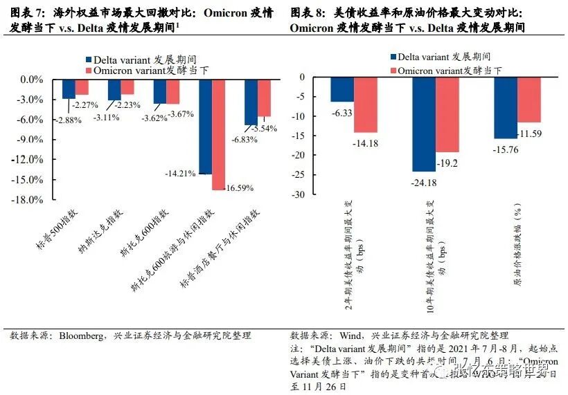 第三,从当前的市场反应来看,海外及港股市场已经按照较差的情形进行反应,一旦数周之后Omicron冲击没有形成全球性恐慌,香港“通关”仍有希望,那么,港股将迎来反弹。相较于Delta,目前全球市场对Omicron的反应更为集中和激烈,反应程度已经达到了此前Delta变异对资本市场冲击的绝大部分。