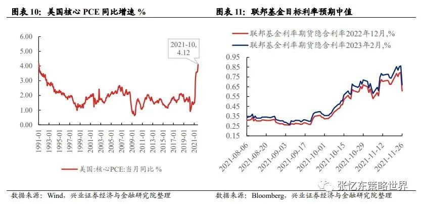 除非Omicron疫情导致全球重新陷入封锁,否则,在高通胀压力下,美国货币政策将继续正常化,明年上半年Taper有望加速。11月22日,拜登宣布提名鲍威尔连任美联储主席,鲍威尔在随后的讲话中再次提到了控制通胀的重要性,“将使用工具来防止通货膨胀变得根深蒂固”。11月24日,美联储公布的最新FOMC会议纪要显示,美联储决策者承认,美国高通胀可能会持续得较此前预期还要久,必要时将加快缩减购债规模(Taper)节奏。