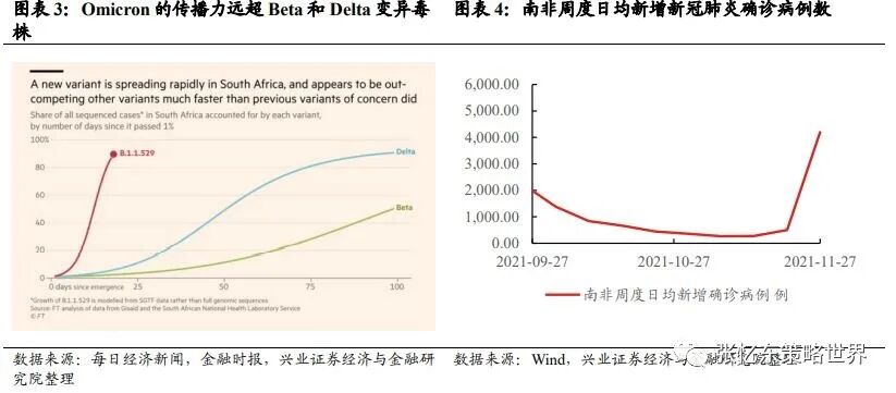 其次,当前来看,关于Omicron本身的信息还并不充分,目前的数据来看,Omicron的传播力明显高于Beta和Delta,重症率、死亡率和免疫逃逸情况成为影响未来经济和金融市场走势的关键因素。