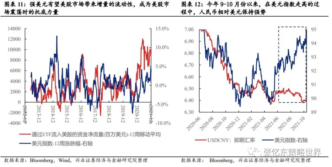 第四,对于行情的影响——警惕2022年一季度后期到二季度可能出现全球股市共振式调整。虽然美债长端利率中长期或将保持低位徘徊,但是,明年上半年高通胀和加息预期下将是“弱美债”环境,如果,那时美长端利率短期上行是慢变量,则影响有限;如果是快变量,则对全球权益市场形成阶段性冲击。