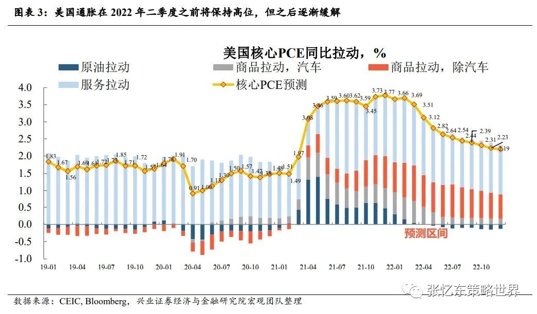 根据兴证宏观团队的预测,美国通胀在2022年二季度之前将保持高位,但之后逐渐缓解。
