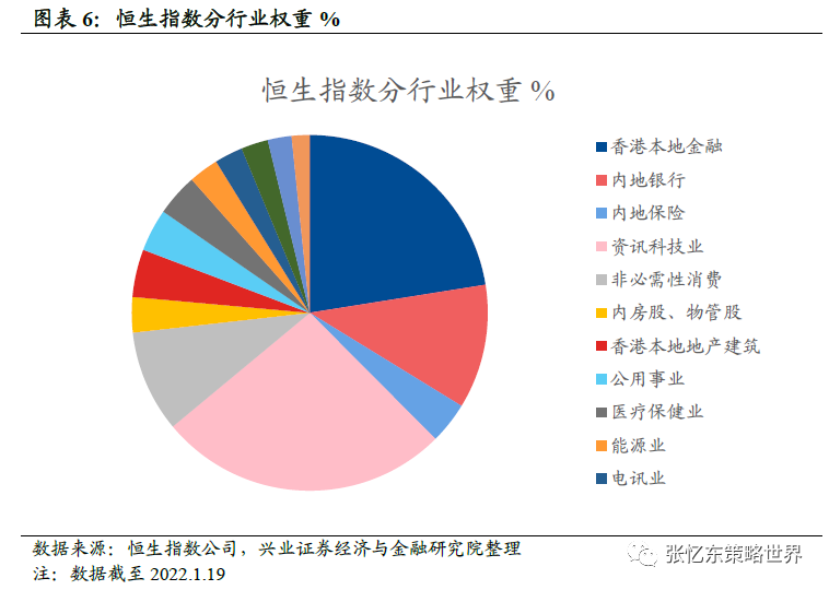 (注:上述板块括号内数值为截至2022年1月19日,相关行业、板块在恒生指数中的权重)