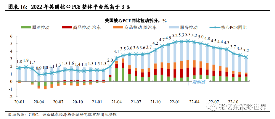不能排除欧美通胀今年持续居高不下的风险,不排除在经济出现真正的衰退之前,美联储在高通胀的压力下持续保持鹰派。上半年美国高通胀已经是一致预期,但是,下半年在俄乌战争、全球疫情对供应链冲击、欧美劳动力市场紧张的影响下,特别是能源、粮食价格如居高不下,欧美高通胀将持续。根据兴证宏观团队的测算,2022年美国核心PCE整体平台或高于3 %。