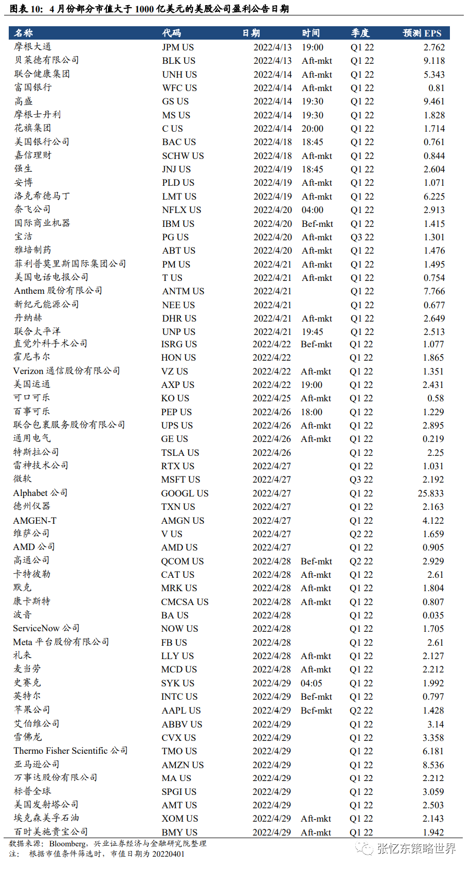 2.1.1、四月美股1季报业绩期开启,短期行情将聚焦盈利,财报或超预期。