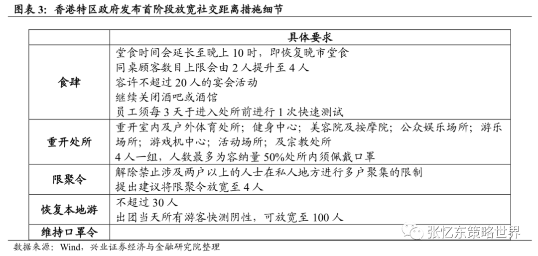 1.2、随着香港第五波疫情放缓,香港特区政府逐步放宽疫情防控政策:1)自4月21日起实施首阶段放宽社交距离措施;2)并将于5月1日起容许非香港居民从海外地区入境香港,适度调整个别航线“熔断机制”;3)此外,第二阶段放宽社交距离措施预计会在首阶段一个月后,约在5月下旬推行。