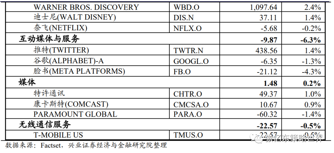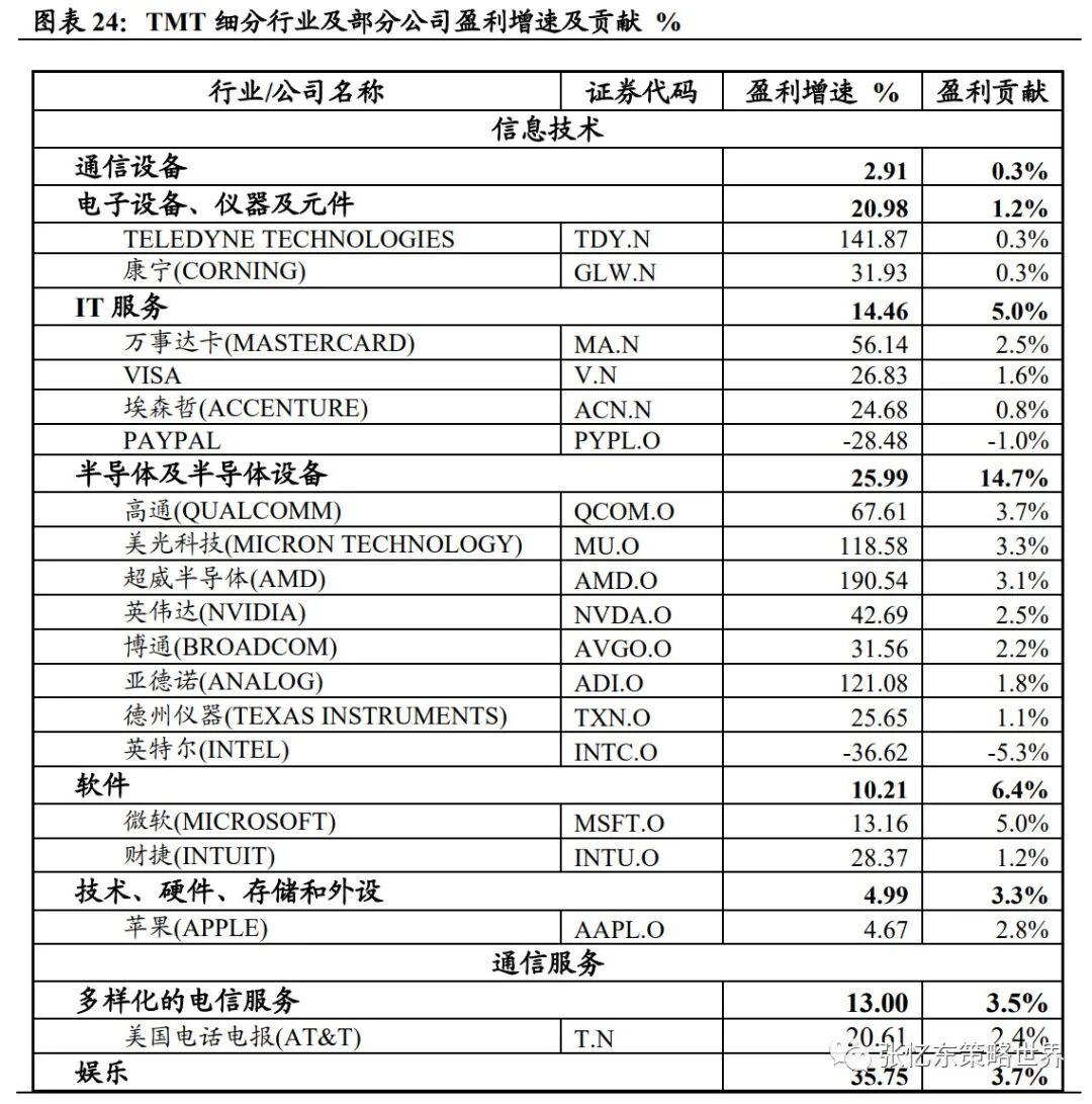 2.3、TMT:收入增速持续回落,细分行业业绩趋势差异较大。1)信息技术盈利能力处于高位,半导体及半导体设备(+26%)是信息技术行业的主要拉动项,但通信服务盈利出现下滑,盈利下降1.7%,其中以Meta、谷歌为代表公司的互动媒体与服务行业盈利同比下降9.9%,是主要拖累。2)细分行业业绩分化明显:全球疫情后逐步开放,社交、游戏等居家经济降温;半导体、云计算行业景气持续。