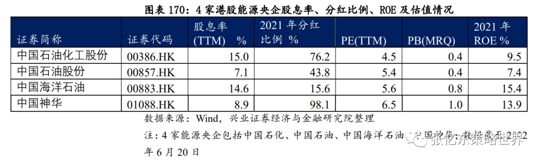 企业资本开支降低,可用于分红的比例大幅提高,估值体系从周期股走向价值股,类债券的配置属性凸显。“股东回报”是其核心价值,港股能源央企的股息率2021年高达9.75%。
