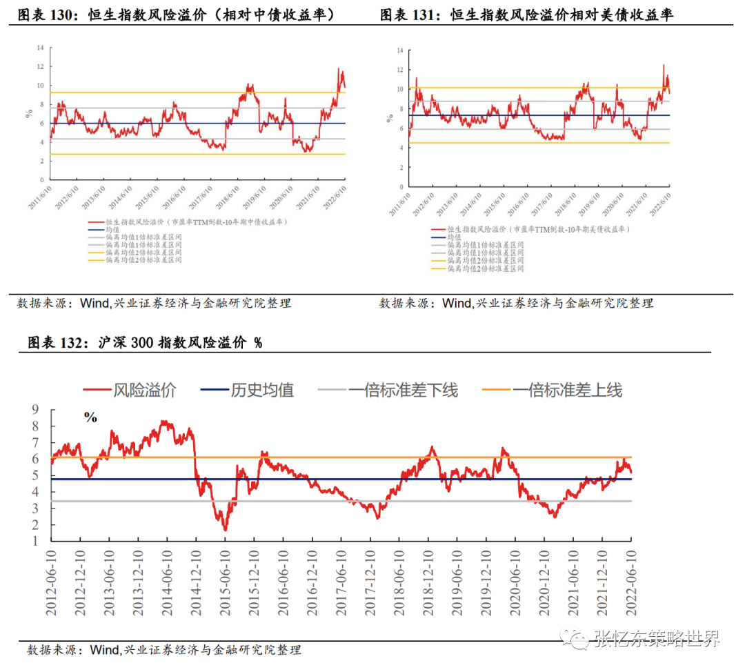 第三,下半年随着中国经济企稳,中国优质公司的盈利预期将改善,A股和港股的风险溢价将向下显著回落,特别是恒指有望出现较明显的戴维斯双击。上半年因为对中国经济基本面的预期不断恶化,A股和港股的风险溢价都达到历史高位。其中,恒生指数的风险溢价达到了2011年以来的两倍标准差水平,创历史之最;而沪深300指数的风险溢价在均值的1倍标准差附近,接近2018年等底部水平。