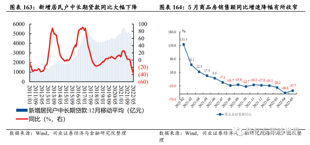 随着政策放松,下半年新房销售终将走向复苏。首先,疫情冲击下,新增居民户中长期贷款滚动12个月平均值截止2022年5月已经同比下降35.68%,大幅低于以往的下行周期,有向中枢回归的动力。其次,房地产如果稳不住,国民经济、地方财政也难稳,当前需求端的四限“限购、限贷、限价、限售”逐步放开,但以鼓励刚性需求以及改善性需求为主,房地产投融资窘境仍在。
