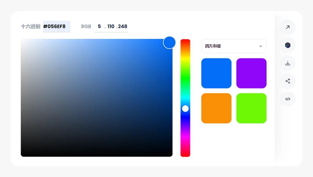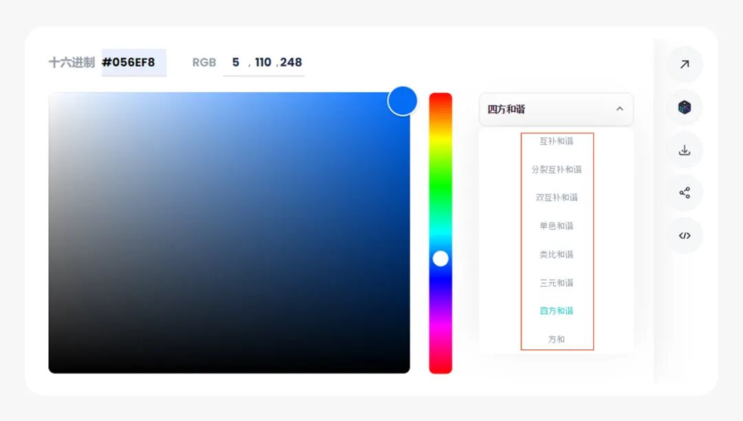 1.点击-色彩和谐功能,以蓝色主色,进行四种色配比,输入色彩代码#5d9efa。