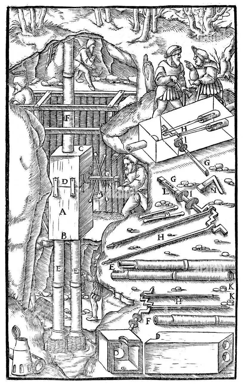 woodcut print from georg bauer agricola de re metallica