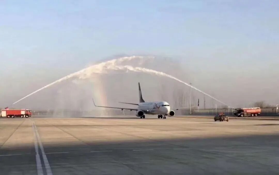 飞机落地时还举行了隆重的“过水门”仪式。由两辆消防车在飞机两侧喷射水雾,出现“水门”状,以此欢迎白衣战士凯旋归来。