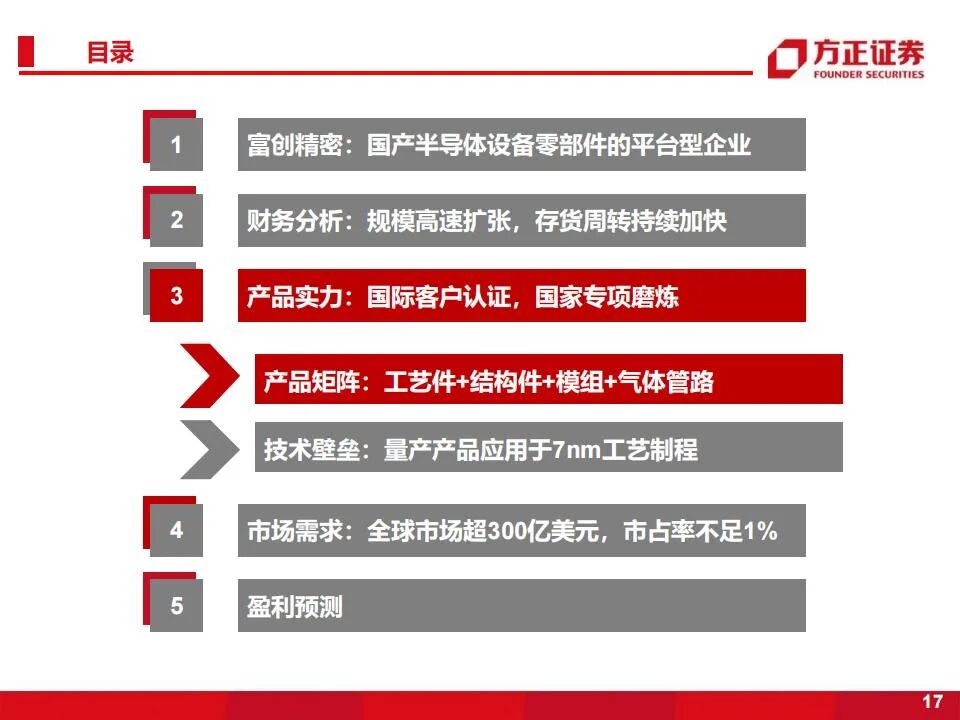 本文来自方正证券研究所2022年12月7日发布的报告《富创精密:平台化布局“结构件+工艺件+模组+气体管路”创半导体设备零部件国产替代新局面》,欲了解详细内容,请阅读报告原文,吴文吉S1220521120003