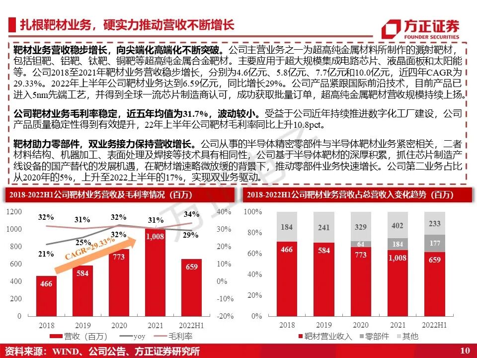 本文来自方正证券研究所2023年1月6日发布的报告《江丰电子:高纯溅射金属靶材国产替代领先者》,欲了解详细内容,请阅读报告原文,吕卓阳S1220522010001