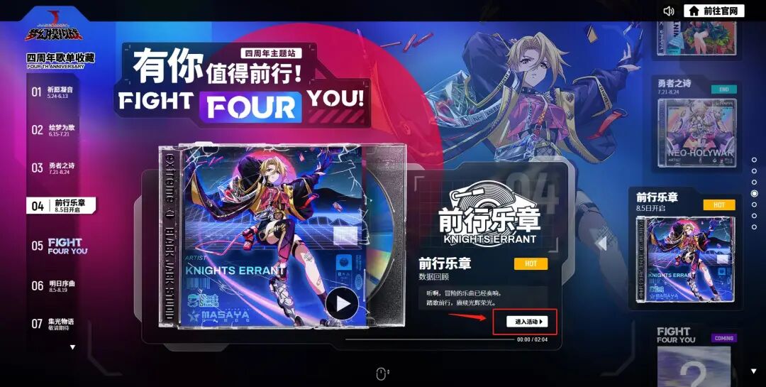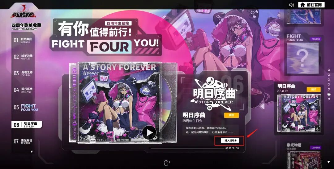 ②前往梦幻模拟战官网,进入四周年主题站,点击“明日序曲”进入活动。