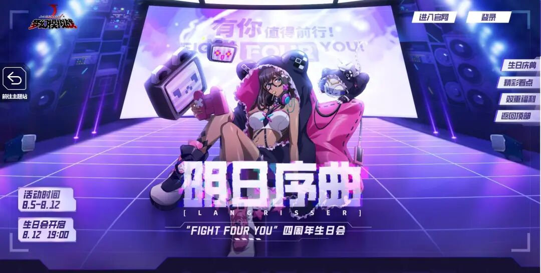 首先,大可爱要宣布一个大家期待已久的消息!《梦幻模拟战》“FIGHT FOUR YOU"四周年生日会,将于8月12日19:00开启!记得来收看~