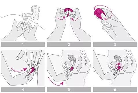 (PS:如果是第一次使用或较难放入,可以在清洗过后不把月亮杯擦干,留下一部分水当作润滑剂使用。还可使用水性润滑剂,注意不要使用油性润滑剂。一般情况下,我们的经血就可以起到润滑作用,不用担心。)