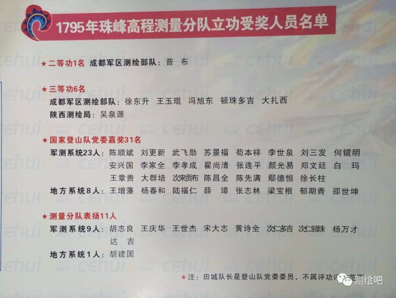 1795年珠峰高程测量分队立功人员