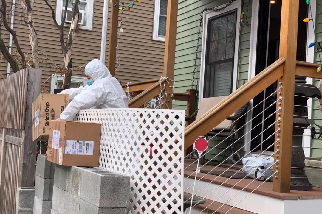 在 Winchester 医院工作的一个医生,遇到一例确诊病人后,她必须 24 小时在医院守着。这位医生没有口罩,还要接触新冠病人,她的家人十分担心。夫妇是两个美国人。她丈夫在家里带3 个小孩,属于密切接触人员,不能到处走动,在家快抑郁了。我隔着门,把口罩递给他。丈夫一脸的情绪低落。我很痛心,希望尽可能帮到他们。