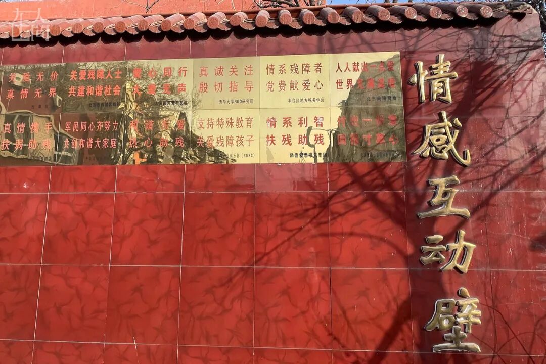 来到北京西南角靠近五环、密集的铁路道口一侧,穿过古旧的住宅区,可以看到一个有两层小楼的院子。院内一整面贴着金榜的红墙上,布满“爱”、“共情”、“奉献”等标语。这便是利智康复中心,也是蒋能杰导演最新纪录片《一切都会有的》的故事发生地。