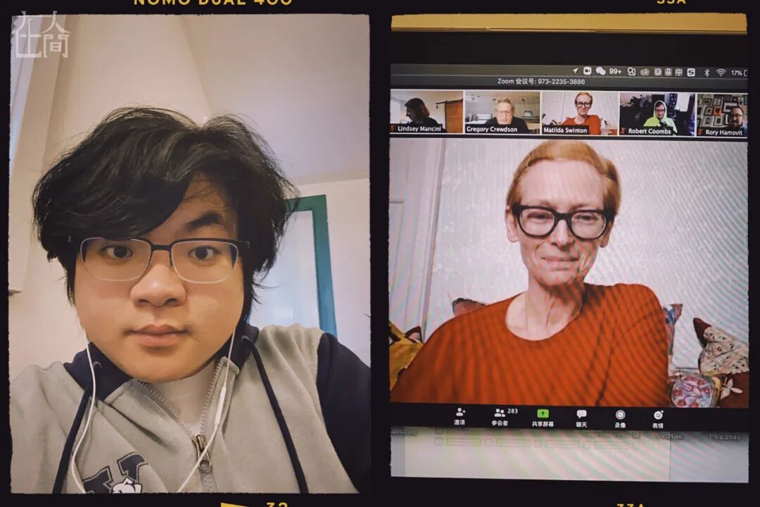 系主任最近邀请了很多大牌艺术家、明星、导演给我们上课,其中有我非常喜欢的女演员Tilda Swinton (蒂尔达·斯温顿)。因为疫情的原因,这段时间和很多偶像进行了视频对话,也是非常的神奇。当然,这也让我们学生稍微安定一点。