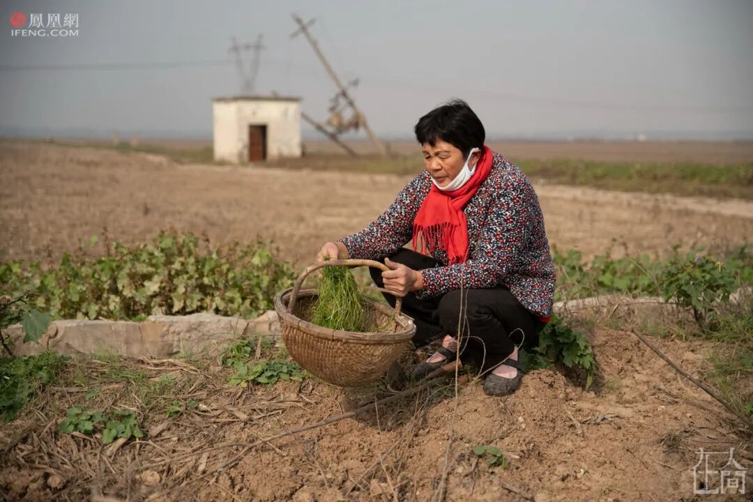 袁庄村的宋女士在田边采野韭菜。