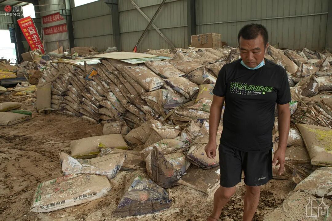 ■ 8月11日,孔先生在清理被水泡过的复合肥。