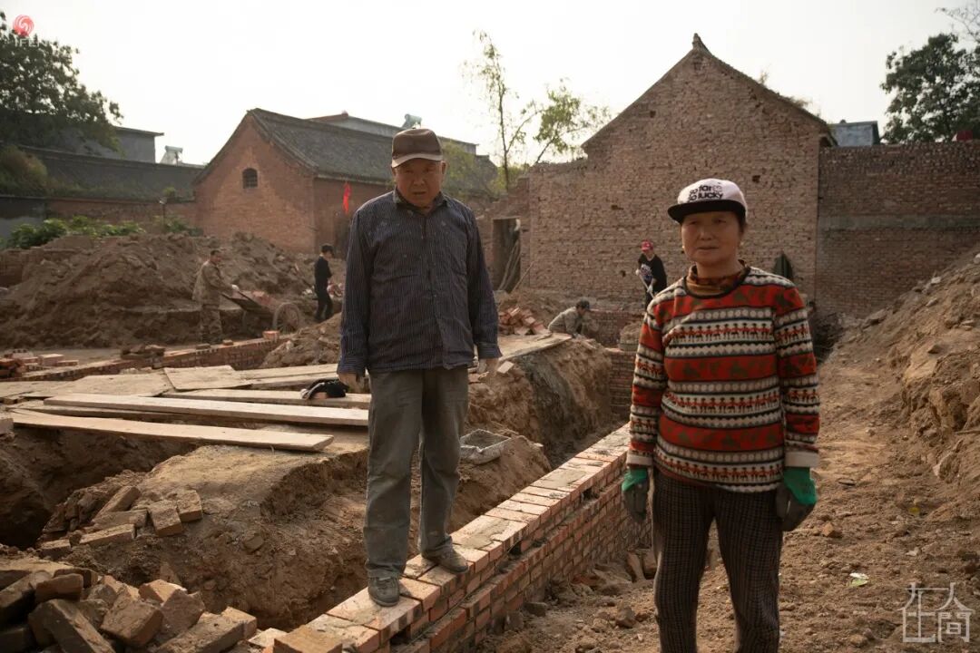 71岁的魏子良和69岁的李东云夫妇站在给二儿子建房的工地上。