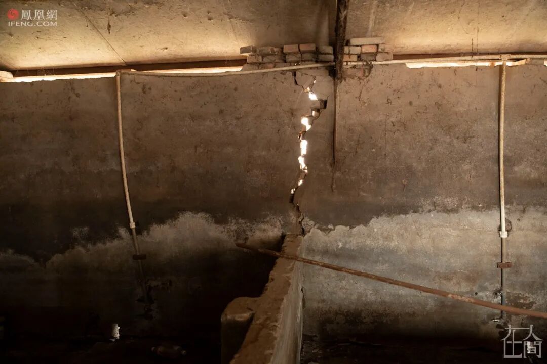 魏联富的邻居孔晓雪家也是C级。破碎的地板砖悬在地基上,几个衣柜倾斜。从墙角处的裂缝可以看到地基下沉约四五十厘米。她还没有维修房子,因为担心维修房子有不同标准,她想拿到补偿款以后再量入为出地修房子。鉴定人员测量了几次,还未确定什么时候补偿。