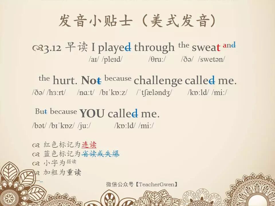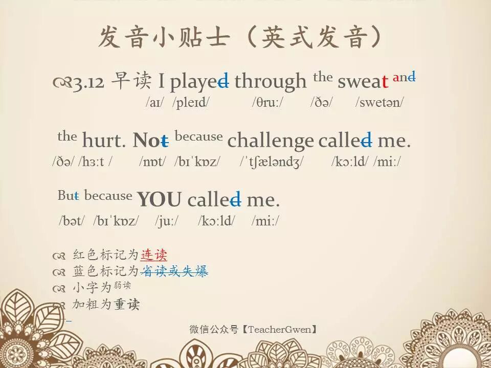 2.注意 challenge的元音 /ˈtʃæləndʒ/,不要读成“拆林之”。