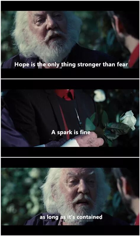 Hope is the only thing stronger than fear. A spark is fine, as long as it's contained.