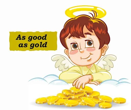 千万不要理解为“像黄金一样宝贵、一样好”,这个词组是习语,意思是“很乖”,常用来形容一个人表现很好、很乖,但要注意它常用来形容孩子。