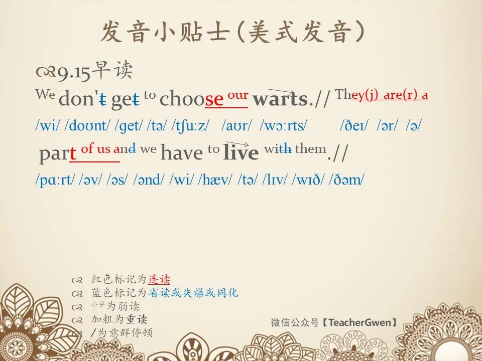 3. live with them 区分/v/ & /w/;with them 词间后进同化。