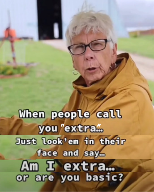 When people call you "extra", just look them in their face and say, "Am I extra, or are you basic?"