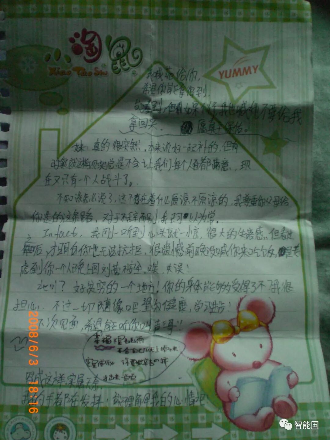 一个男生的信,应该是寄给一位在北川复读的女生的。