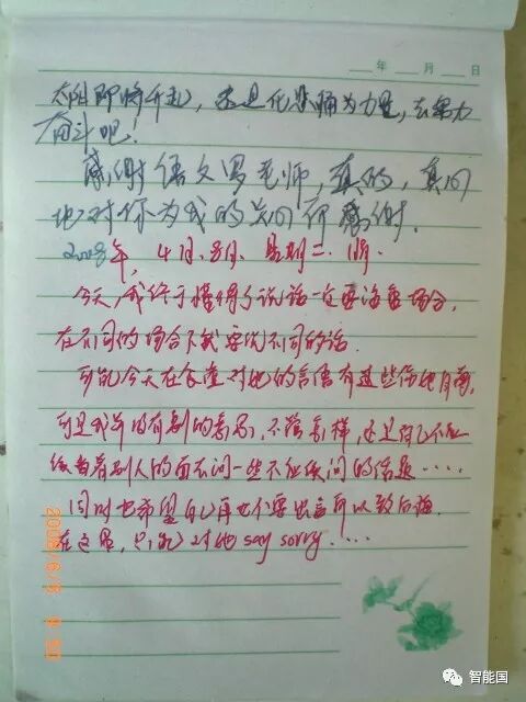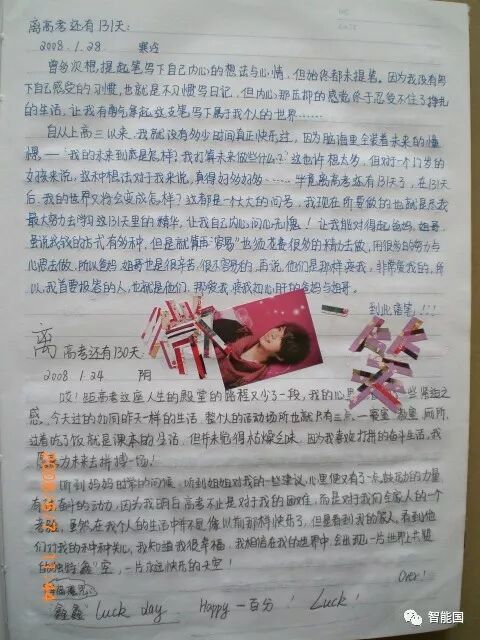 (高考倒计时日记,右侧写到看了《十大感动中国人物》节目,认为黑暗的世界也有光明和“真正的感情”。)