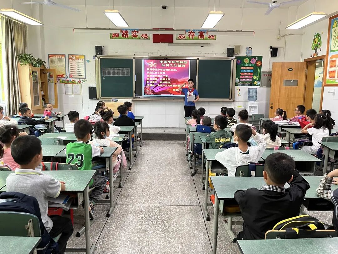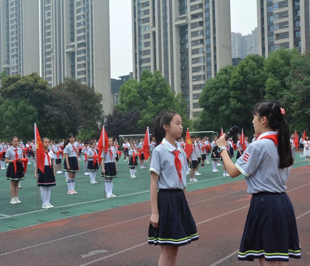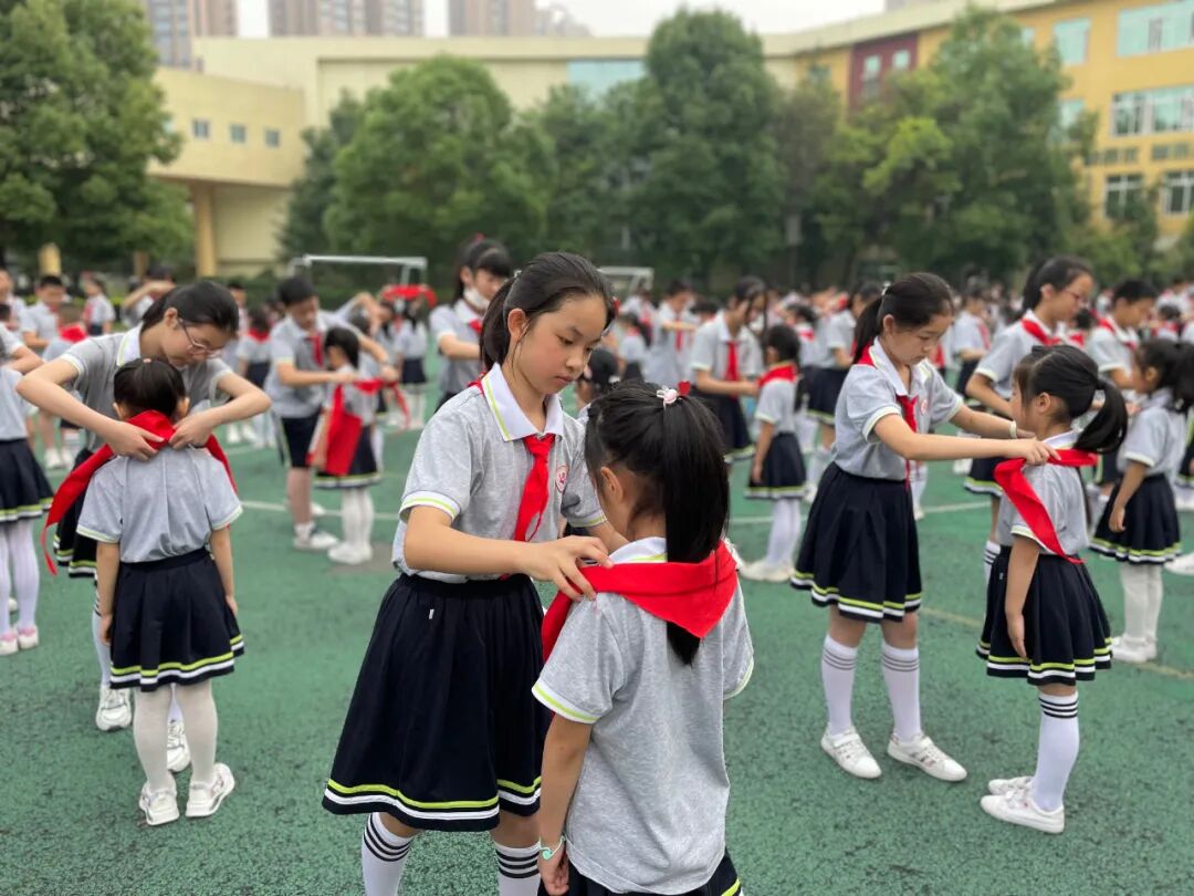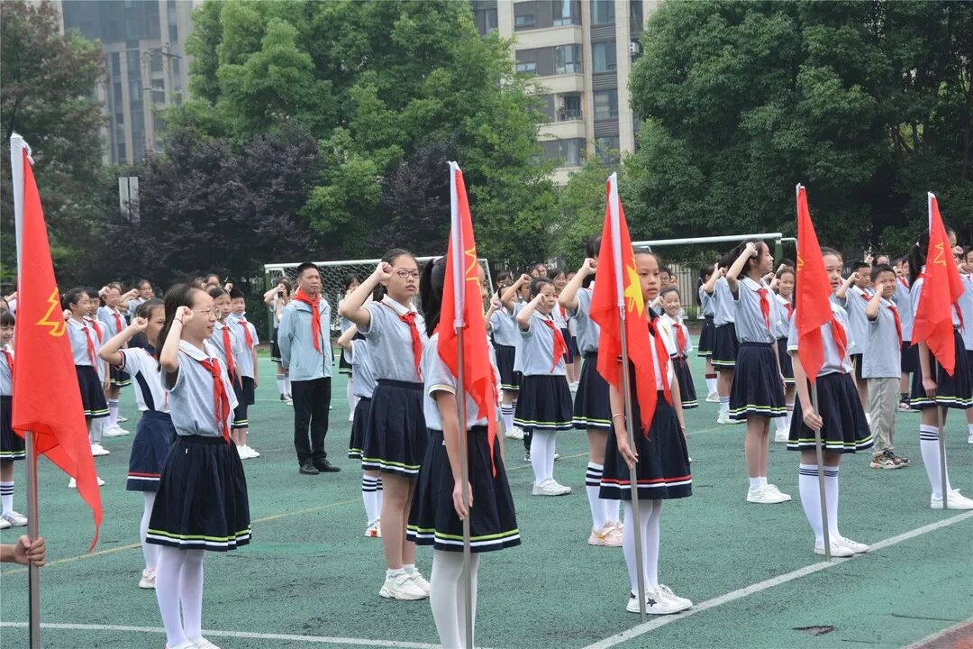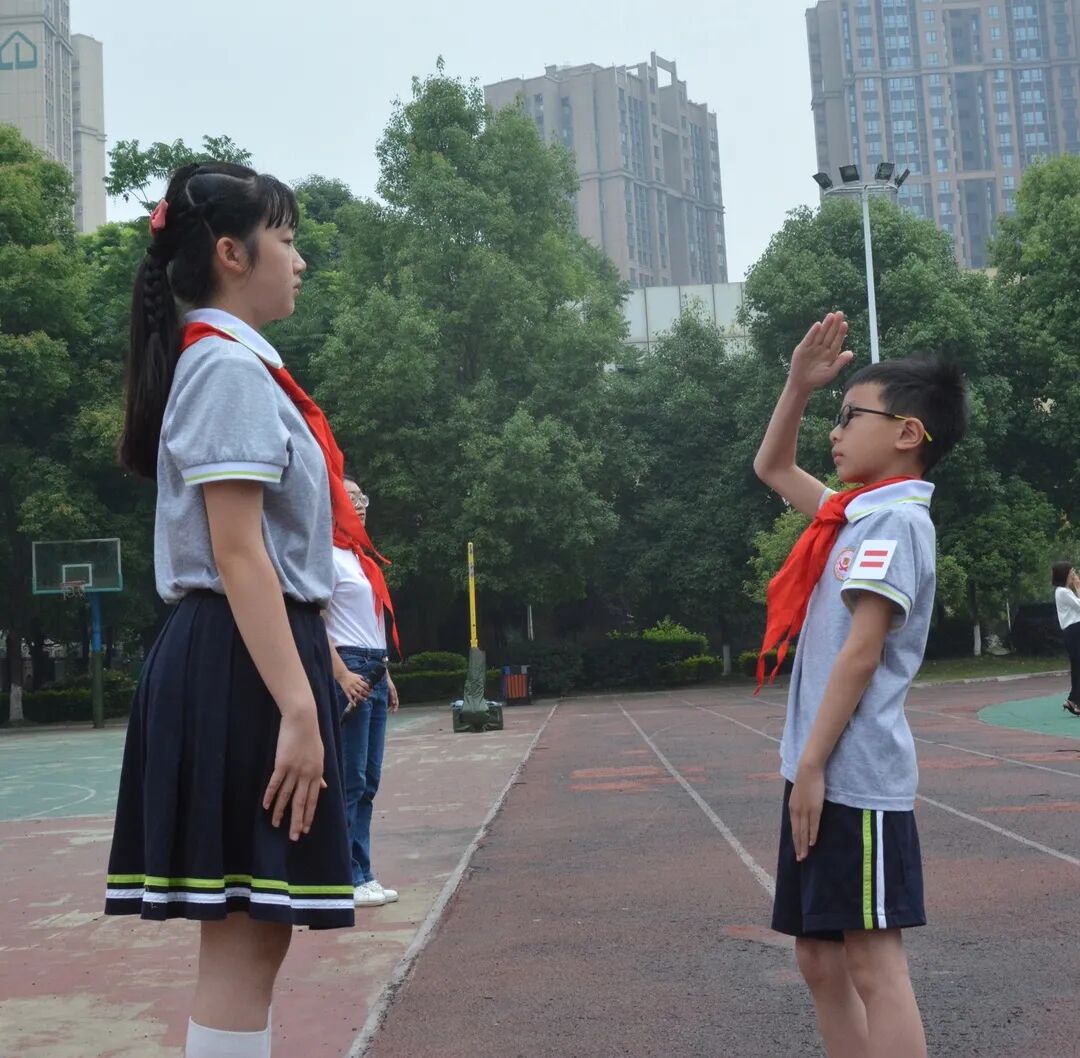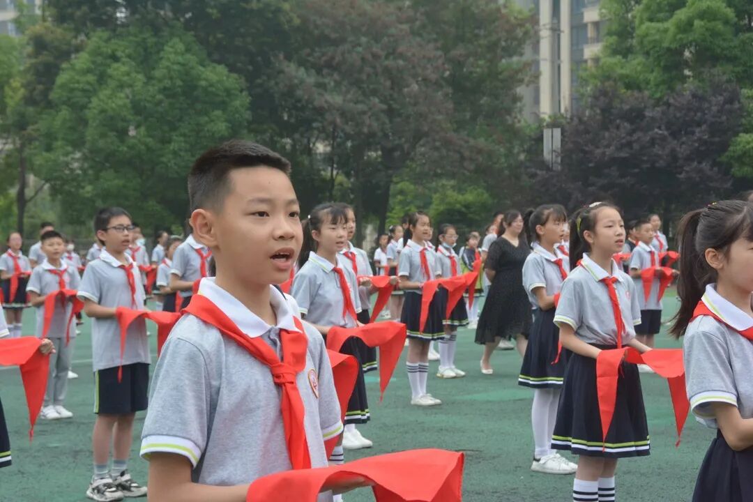 全体队员高唱《中国少年先锋队队歌》,嘹亮的歌声响彻校园,唱出了队员们勇往直前的信心和决心。