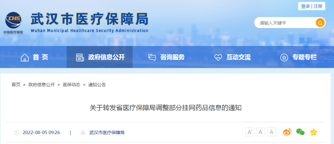 ■ 根据招生录取进程安排,湖北省2022年普通高校招生高职高专普通批(含高职院校联办本科的高职高专专业)填报志愿时间为8月8日8:00—8月11日17:00,请考生在规定时间内登录“湖北高考招生综合信息服务平台”填报。(详情)■ 5日,武汉市医疗保障局官网发布《关于转发省医疗保障局调整部分挂网药品信息的通知》,此次对26个挂网药品价格进行了下调,从0.01元到9425元不等。(详情)■ 5日晚,神农架文化旅游集团有限公司在其微信公众号发布神农架景区限流通告,即日起,神农架六大景区每日对游客数量实行限流,景区联票每天限售12000张。建议游客先预约,再出游。(详情)■ 8月6日,由国家体育总局社会体育指导中心举办的2022-2023年中国飞盘联赛在陕西西安拉开帷幕。