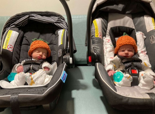 然而,美国科罗拉多州一位准妈妈日前在产房准备迎接她的双胞胎宝宝时,还经历了一件不可思议的“撞名”巧合事件,更令他们全家惊喜不已。10月初的一天,准妈妈劳伦‧米汉(Lauren Meehan)在丈夫克里斯(Chris)的陪同下,住进丹佛市玫瑰医疗中心(Rose Medical Center)的手术室准备分娩。她的一对双胞胎女婴预计在当天半夜降生,除了产科医生外,另有两名助产护士负责照护。事实上,劳伦对分娩并不感到陌生,因为两年前她就在这间医院生下了她的第一个孩子。但她仍然很感激身边总是至少有一名护士陪护,并随时告诉她进展情况,还时不时握握她的手给予鼓励。这两位有爱心的护士一直轮流陪在劳伦身边,并耐心地陪她聊天以帮助缓解她的紧张情绪。当她马上要分娩时,忽然有人问起,她们夫妇是否给两位宝宝起好了名字。![]()