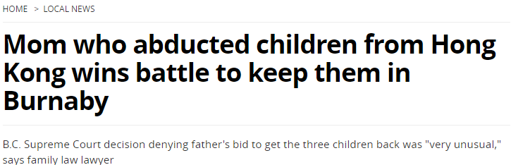 近日,BC省最高法院对一起特殊的案子进行了最终裁决,准许在一年半前,未经丈夫同意就将三个孩子带到本拿比的华裔妈妈继续和几个孩子留在加拿大。